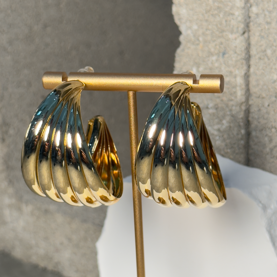 Medium Chunky Twisted Ribbed Hoop Earrings