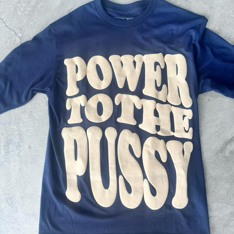 NAVY POWER TO THE P Oversized T-Shirt 100% Shrink-Free Cotton Long Sleeve Graphic Tee