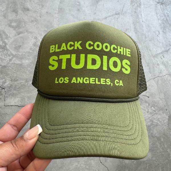 Olive Black Coochie Studios Adjustable Unisex Trucker Hat